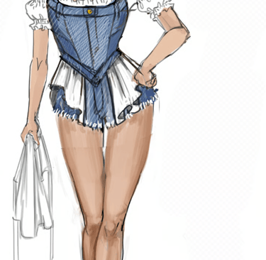 DENIM CORSET TOP W RUFFLED “UNDERSHIRT” AND DENIM SHORT