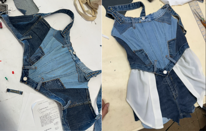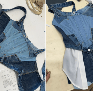 Corset Top and Undershirt Attached and Rigged to Zip on over already on denim shorts