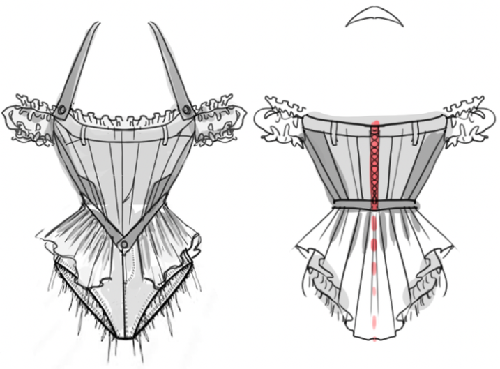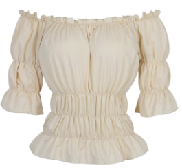 Inset Elastic Ruffle at top of Corset top and Off the Shoulder Puff Sleeve