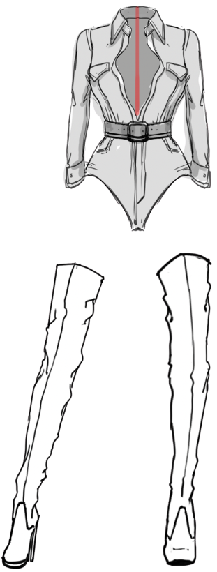 Her first hero silhouette, no longer needing to parody sexiness, she is the real thing.