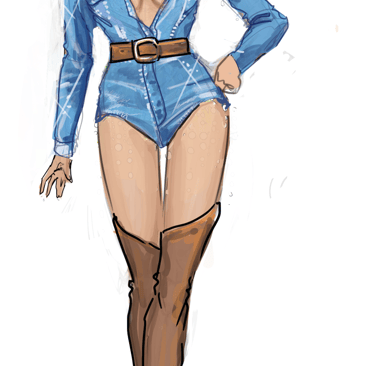 Denim Jumper is put on during a 55 second quick change