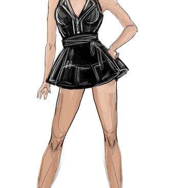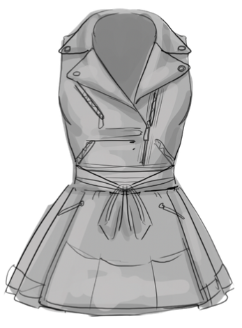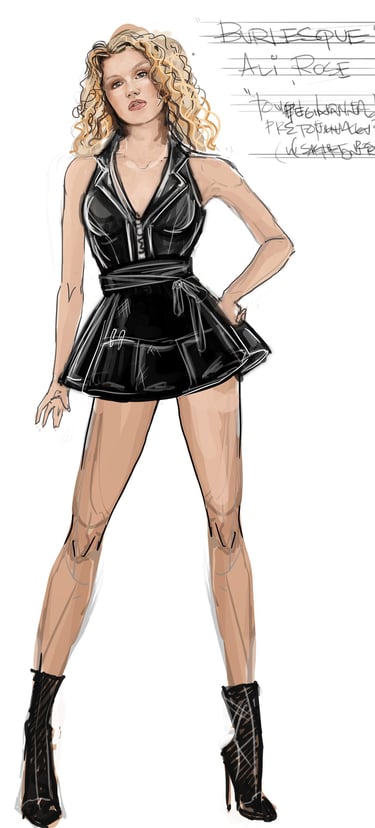 Ali would underdress to the Red Finale BENEATH the Black Look w Apron PRIOR to entering scene.