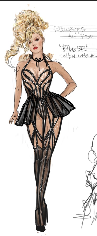 Embellished Lines of Black Stretch Belt Looping coverstitched onto Nude Mesh Backed with Nude Span