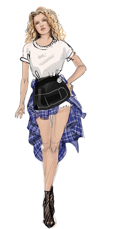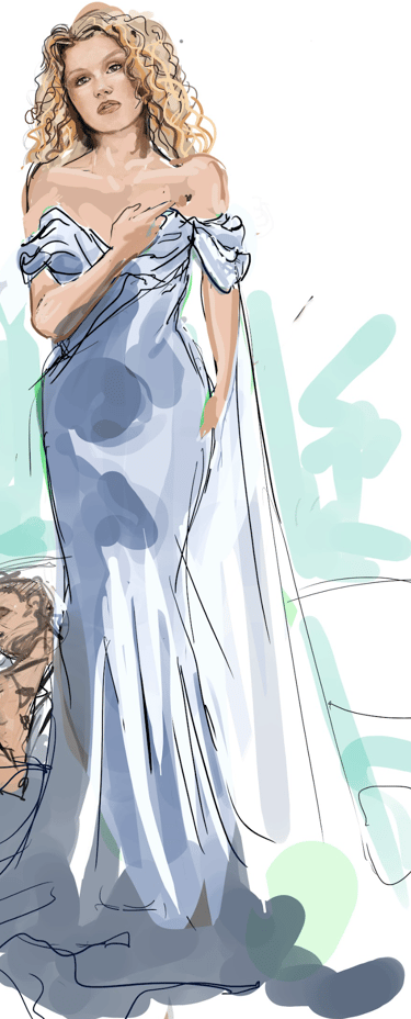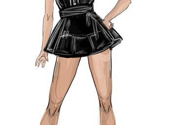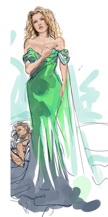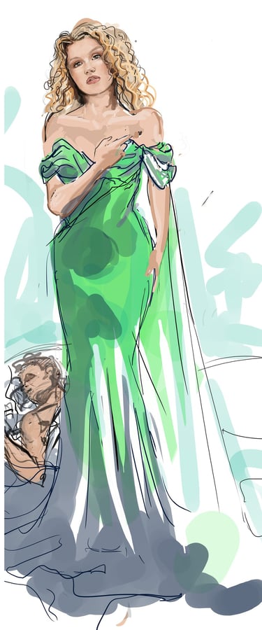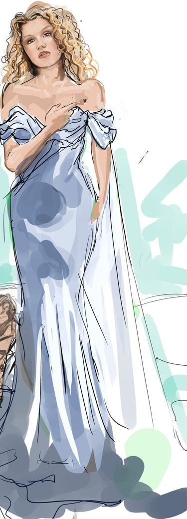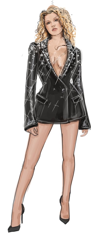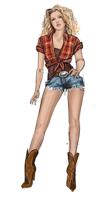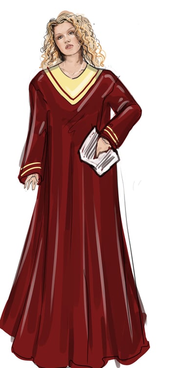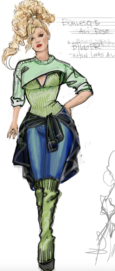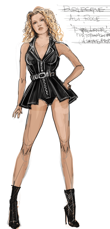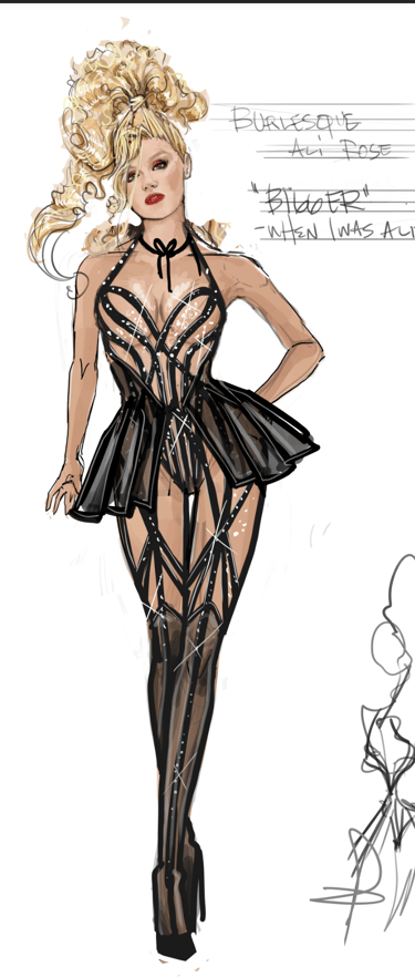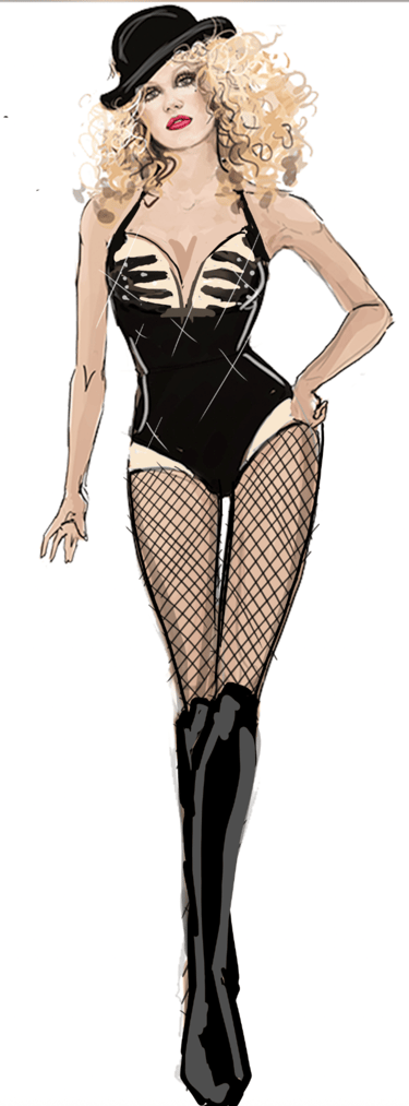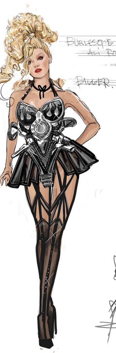 Ali is the heart of the story. Coming from a small-town girl with big dreams who transforms into a burlesque star. Her style aesthetic begins in Iowa with modest, farm-girl clothing that emphasizes innocence and humility. As she travels to New York and finds her place in Tess’s club, her costumes evolve into glamorous, jewel-encrusted burlesque looks, layered with sequins, fringe, and sparkle. Ali’s clothing tells the story of transformation: from naïve outsider to confident star of the stage.