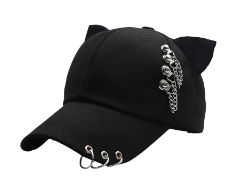 Black Trucker Cap with White Bar Code and Fox Ears