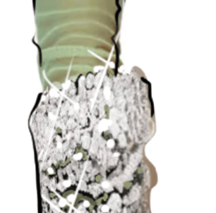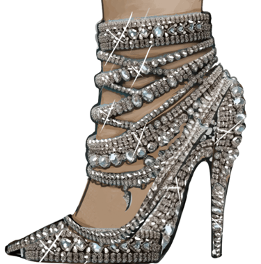 crystal encrusted pumps peak out of thick tufts of mint green marabou.