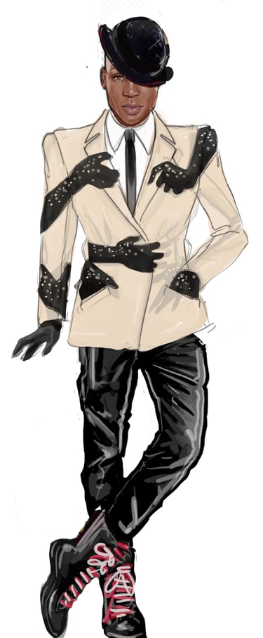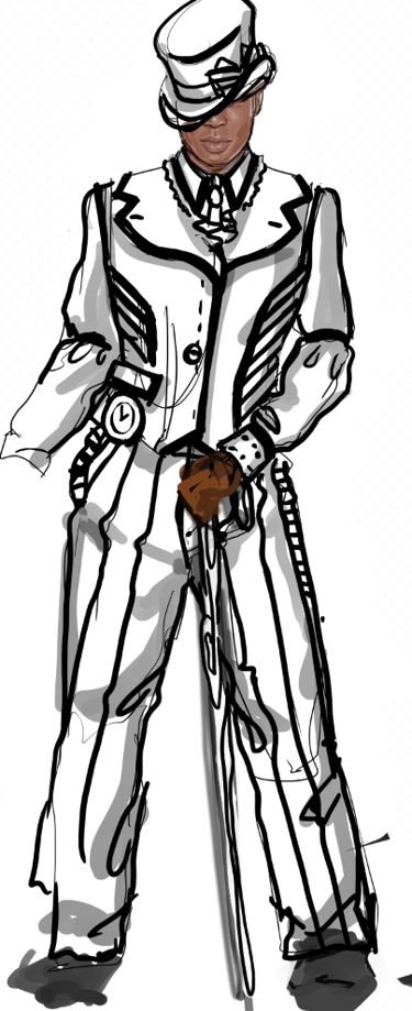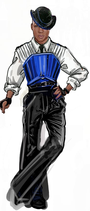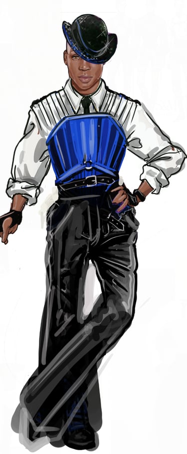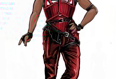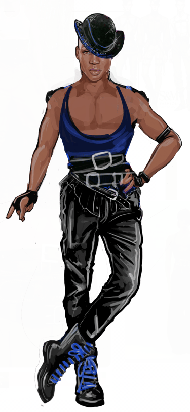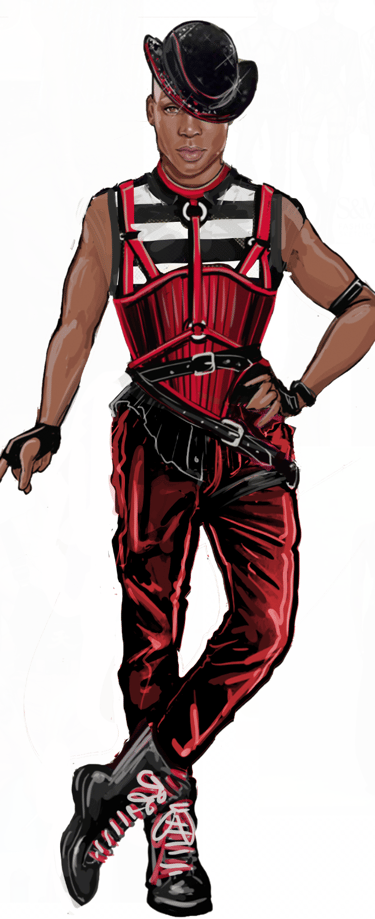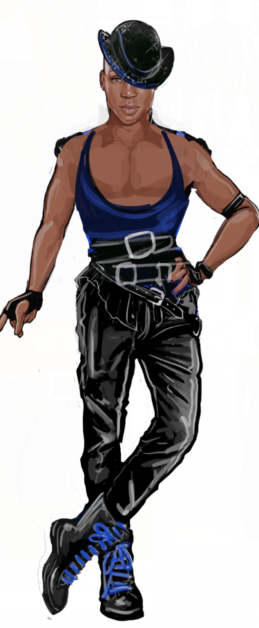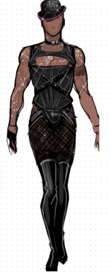 Sean is the witty MC of the club, always sharp in tailored suits and brimming with charisma. His clothing aesthetic is sleek and polished wearing mostly tuxedos, jackets, and stylish accessories that show his role as the master of ceremonies. His look should be grounded in sophistication and theatrical flair, giving him authority and sparkle as the ringmaster of Tess’s world.
