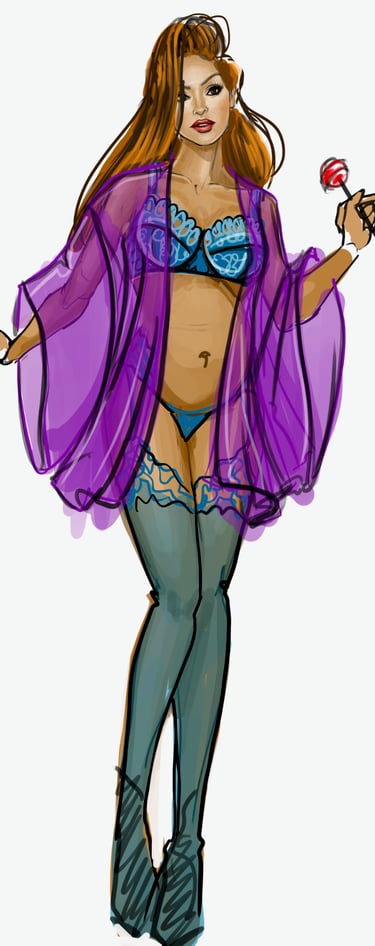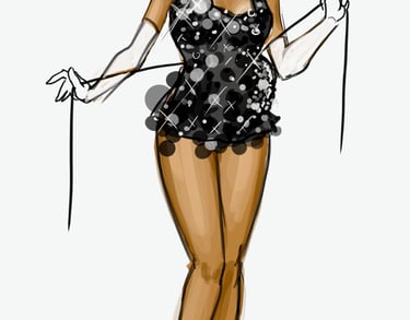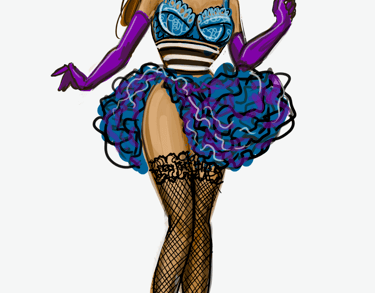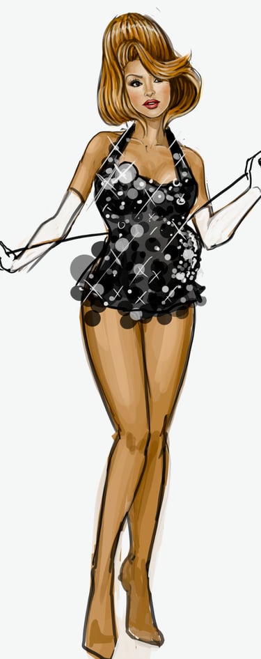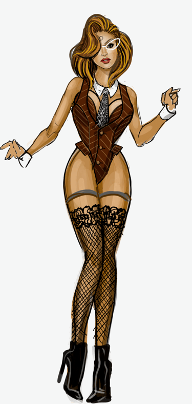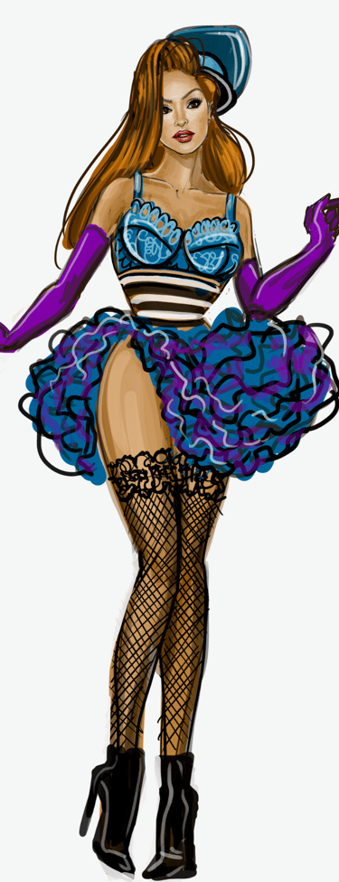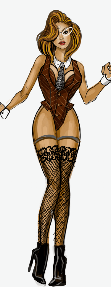 Ali is the heart of the story. Coming from a small-town girl with big dreams who transforms into a burlesque star. Her style aesthetic begins in Iowa with modest, farm-girl clothing that emphasizes innocence and humility. As she travels to New York and finds her place in Tess’s club, her costumes evolve into glamorous, jewel-encrusted burlesque looks, layered with sequins, fringe, and sparkle. Ali’s clothing tells the story of transformation: from naïve outsider to confident star of the stage.