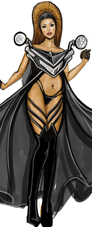 Black chiffon train from top of Bra line