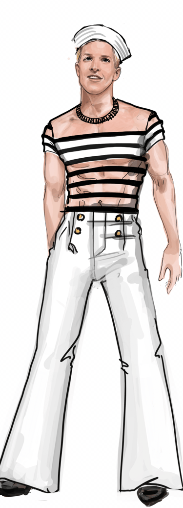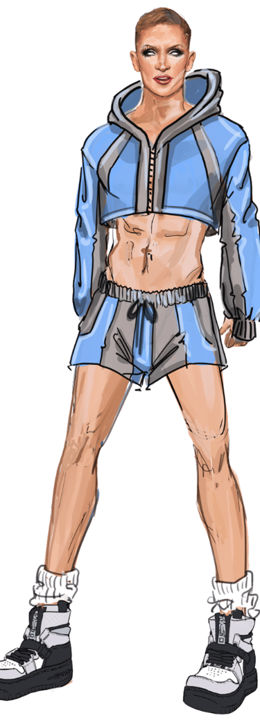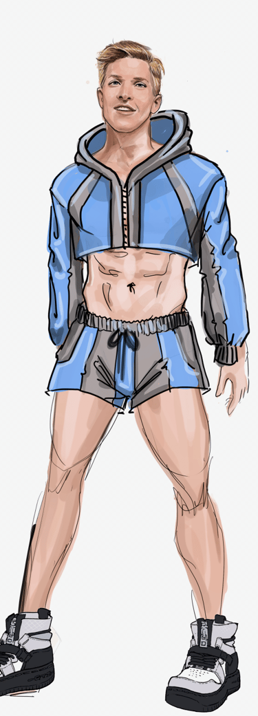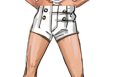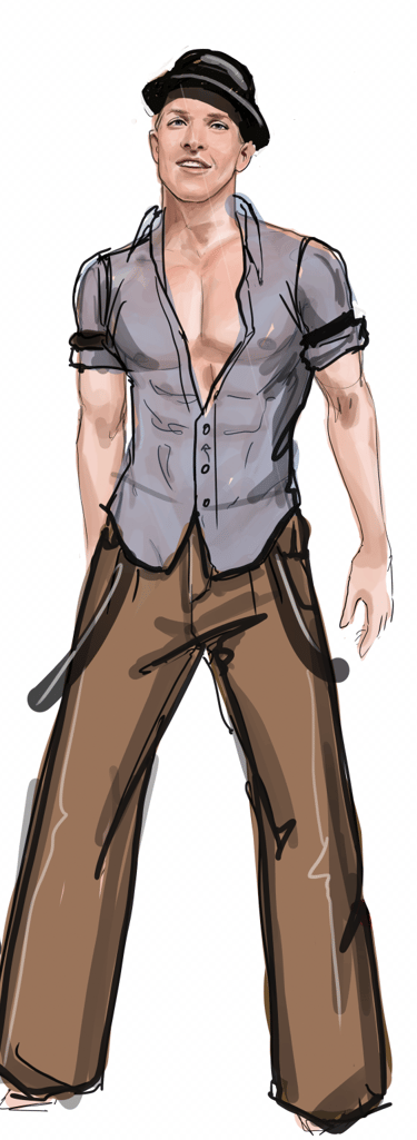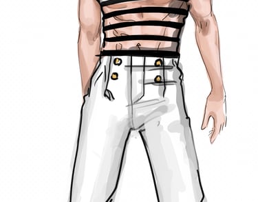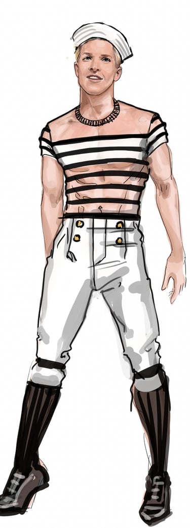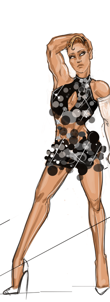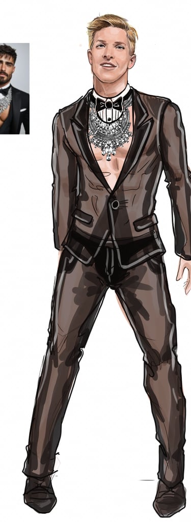 Trey, also known as Chardonnay, is the boylesque act. A campy, sexy, comedic, and bold personality and performer. Their costumes are revealing, often incorporating corsetry, high heels, and playful gender-bending elements. The aesthetic is campy and confident, pushing boundaries with humor and sensuality. Chardonnay’s look is built for both spectacle and comedy.