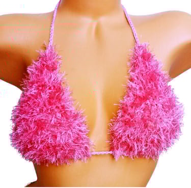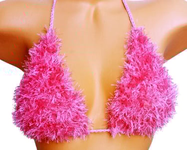 Hot Pink Fur Triangle Bikini Top