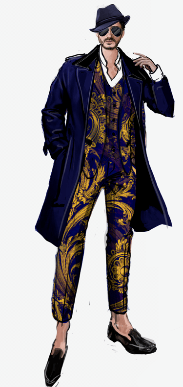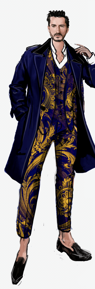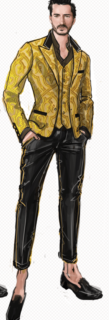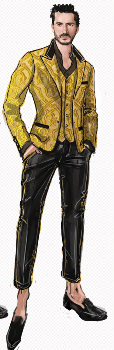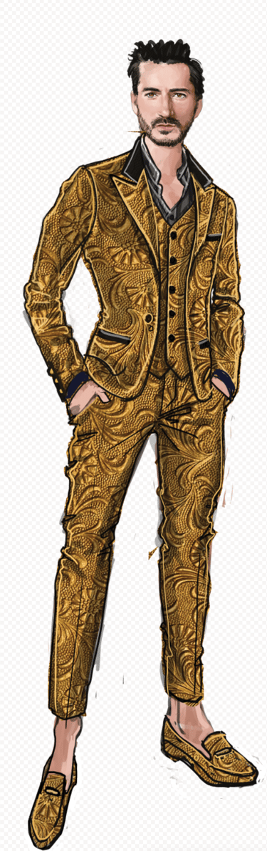 Vince is Tess’s ex-husband and a cold businessman. His clothing reflects his calculating personality: dark suits, crisp ties, and a reserved palette. Unlike the performers around him, Vince is grounded in formality. His style aesthetic is minimal and pragmatic, designed to stand apart from the sequined chaos of the club.